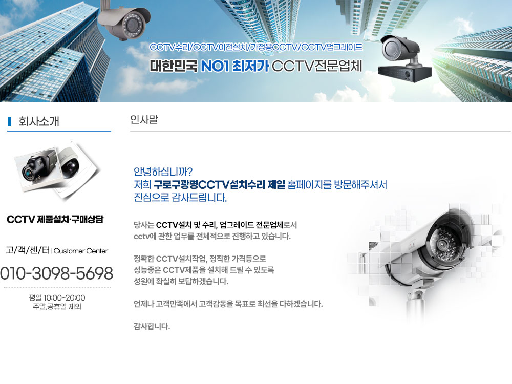상호 : 회사소개 | 구로구광명CCTV설치수리 제일 / 대표 : 임창근 / 사업자등록번호 : 154-26-01801